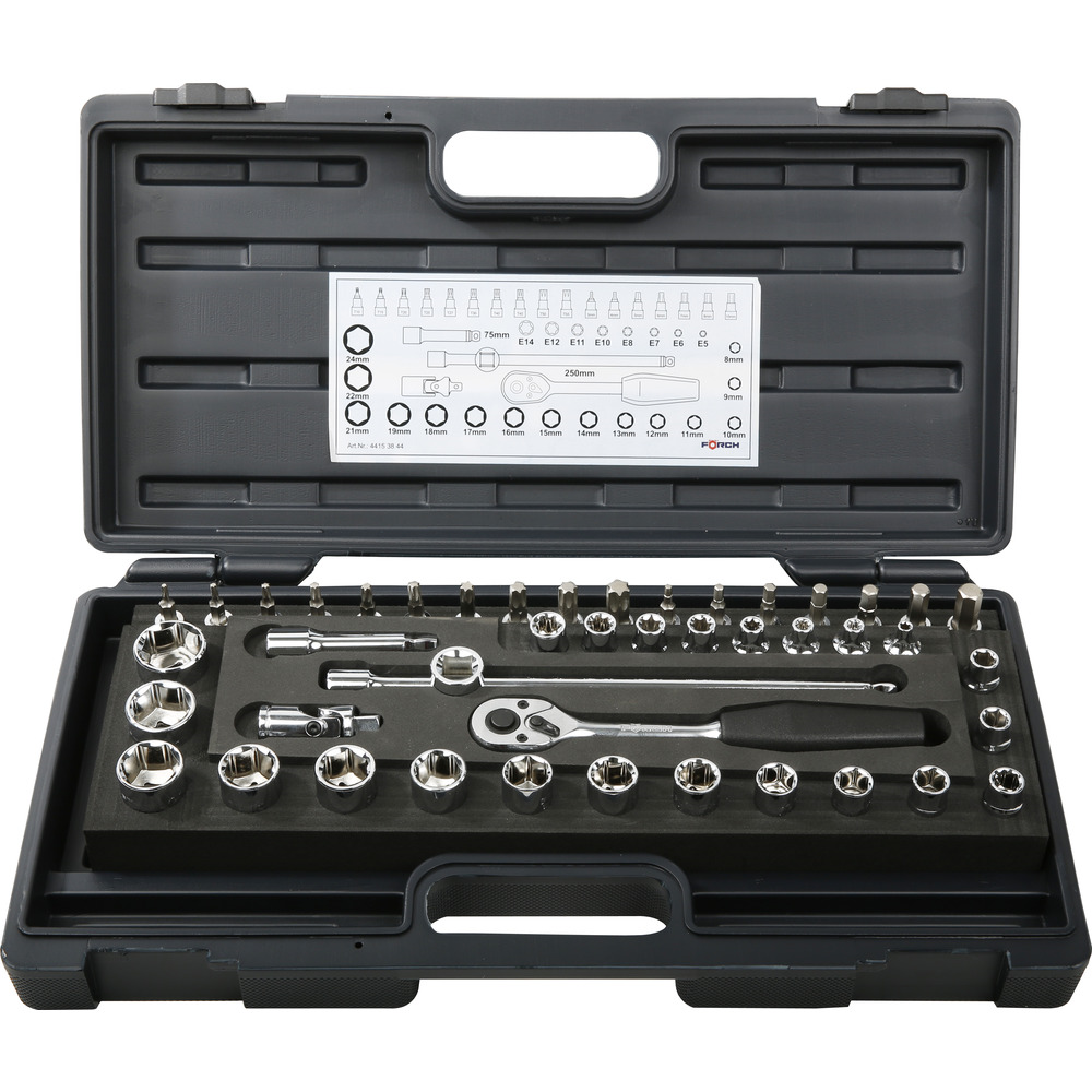 Dokumenter til 3/8" topnøglesæt 6-kant, 44 dele