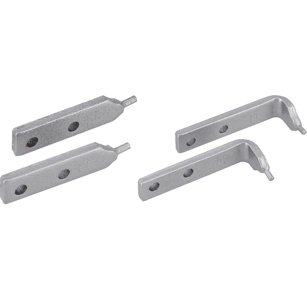 • med dette tangsæt kan der sættes 4 forskellige låseringstænger sammen ved at udskite spidserne