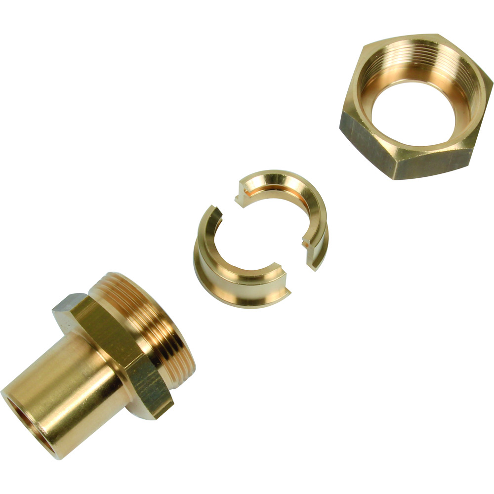 Metallisk tætnende forskruningssæt med kombineret lodde- og pressestøtte til overgangen på et kobberrør